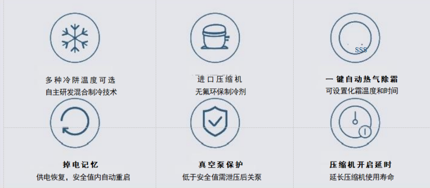 ◎ 一鍵自動熱氣除霜,配備除霜電磁閥,冷阱內(nèi)置盤管直接加熱進(jìn)行除霜,可設(shè)置化霜溫度和化霜時間;